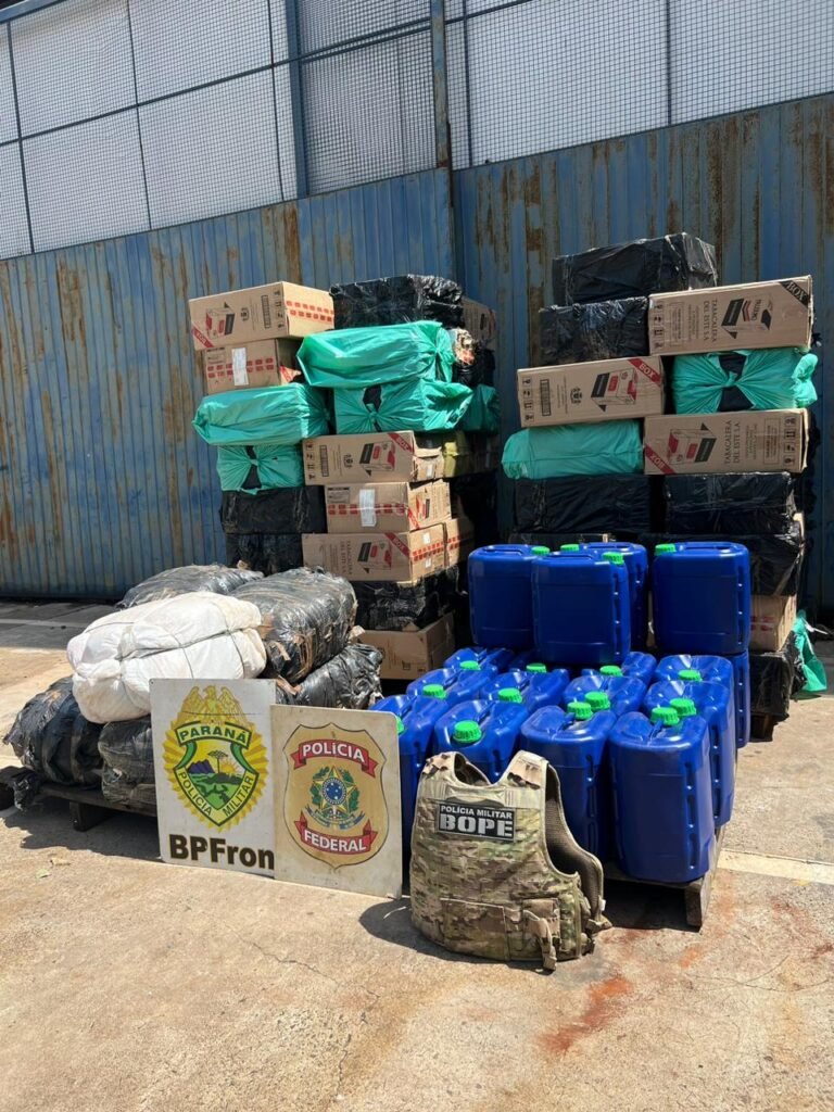 Policiais federais, em ação integrada com equipes da Polícia Militar e Polícia Civil, apreenderam, ontem, centenas de caixas de cigarros estrangeiros e volumes de agrotóxicos contrabandeados em uma residência em Foz do Iguaçu.