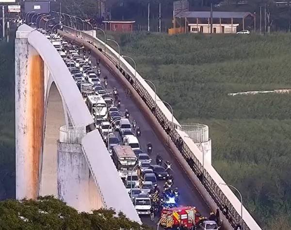Um acidente entre duas motos na manhã desta terça-feira (14) deixou três feridos e causou lentidão na Ponte da Amizade, em Foz do Iguaçu, no oeste do Paraná, de acordo com a Polícia Rodoviária Federal (PRF).