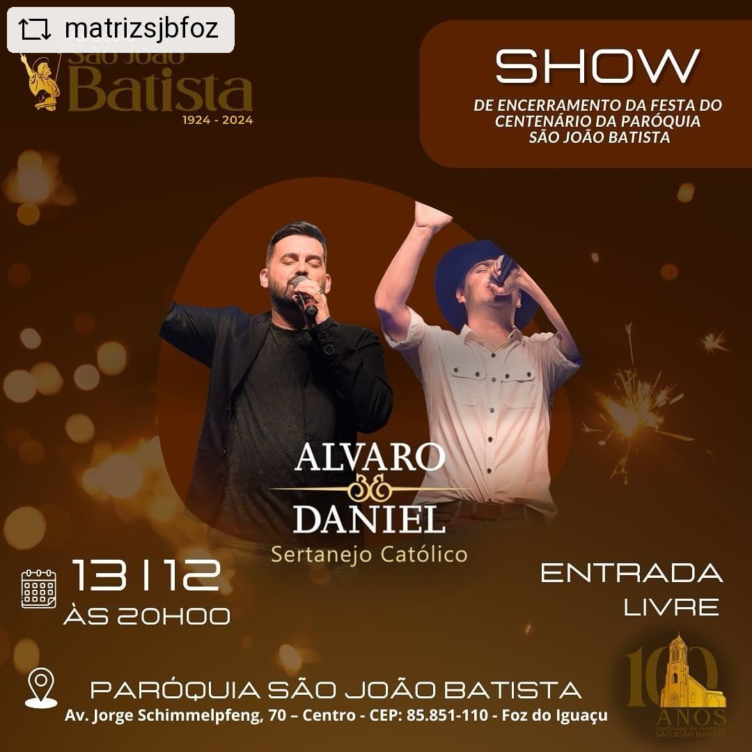 Depois do sucesso do jantar dançante no Viale Cataratas Hotel, no último sábado (7), o encerramento dos festejos do centenário da matriz São João Batista vai contar com a apresentação...
