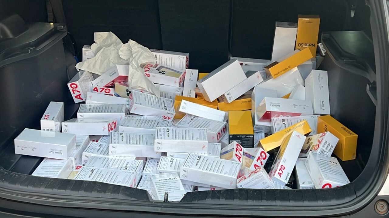 Durante a fiscalização, foram encontrados mais de 300 celulares de uma nova marca estrangeira, fones de ouvido, roteadores e outros eletrônicos, além de aproximadamente 15 galões de azeite com importação proibida. O valor das mercadorias apreendidas chega a cerca de R$ 146.057,21.