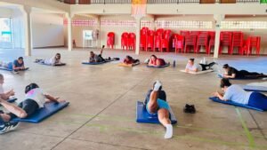 Durante 40 minutos, três vezes por semana, o foco total é na saúde física e mental. Essa é a rotina do grupo de pilates solo que se reúne no Salão Social da Paróquia do Espírito Santo e N. Sra. Aparecida, no Porto Meira, em Foz do Iguaçu. A atividade é promovida pela Secretária Municipal de Esporte, Lazer, Juventude e Melhor Idade em parceria com a Igreja Católica.