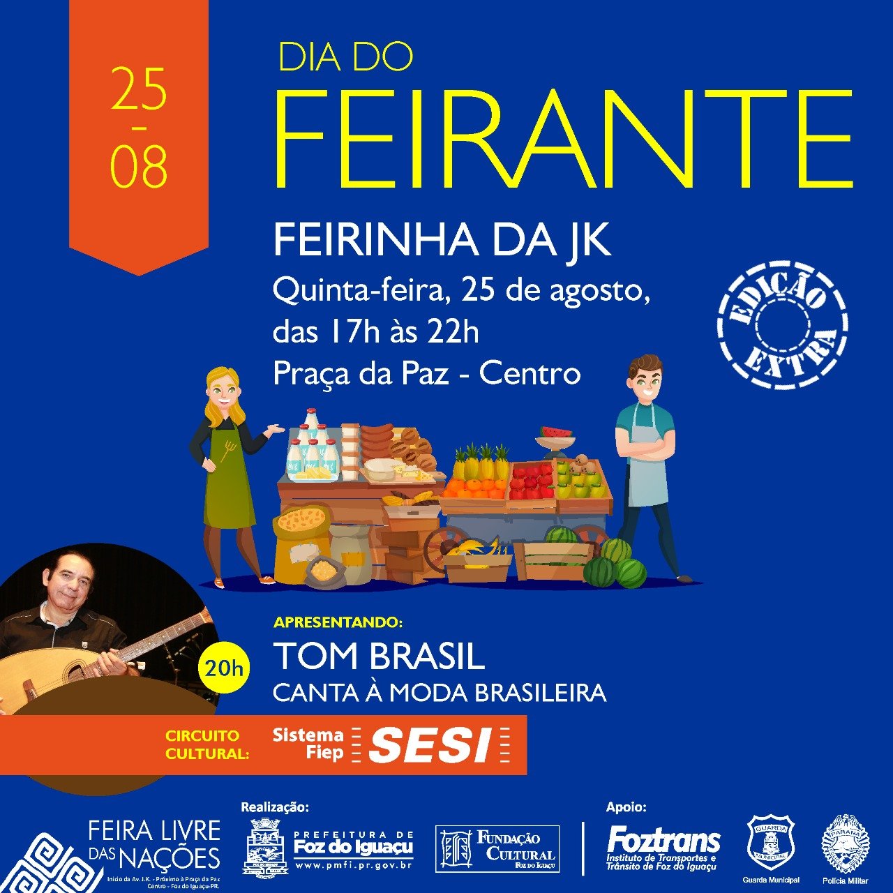 Para celebrar o Dia do Feirante, a Fundação Cultural de Foz do Iguaçu vai realizar uma edição especial da Feirinha da JK nesta quinta-feira (25), das 17h às 22h. A...
