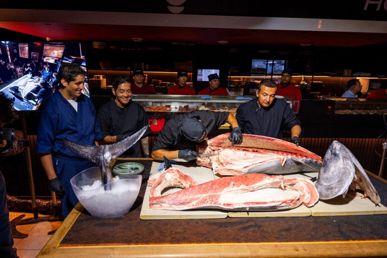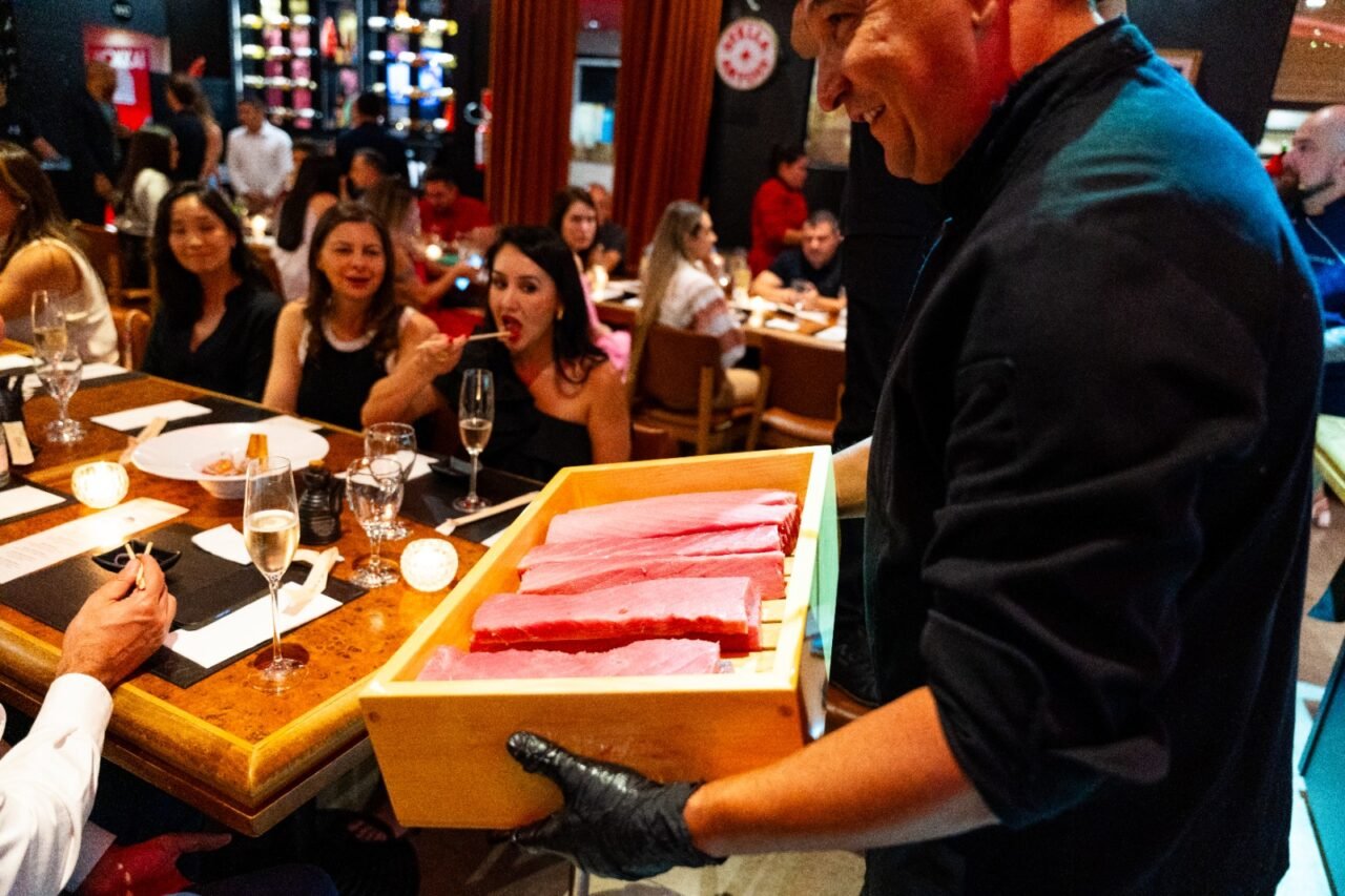 O jantar segue o ritual tradicional da cultura japonesa. A Cerimônia Kaitai envolve o corte técnico do peixe diante dos convidados e a apresentação das características de cada parte. O Bluefin é servido em três cortes: o akami, parte mais magra e vermelha do atum, o chutoro, intermediário, e o otoro, a porção mais nobre do peixe. Um chef conduz a performance sobre um palco montado no centro do salão, executando os cortes minuciosos e servindo o público a cada etapa. A cerimônia também será realizada no Sushi Hokkai de Ciudad del Este, no Paraguai, no dia seguinte.