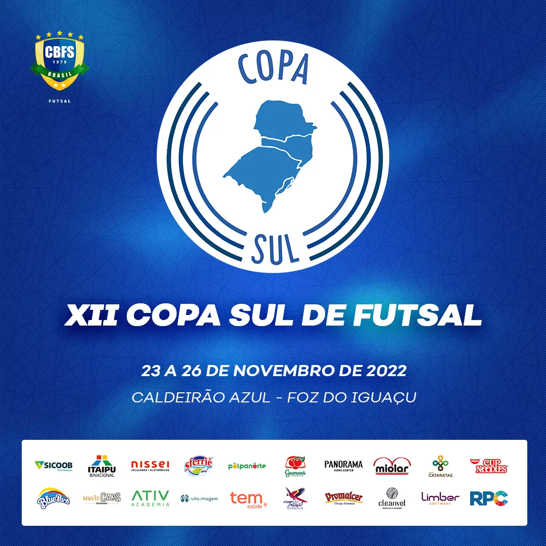 O Caldeirão Azul será sede da 12ª edição da Copa Sul de Futsal, de 23 a 26 de novembro. Quatro times vão disputar a competição, sendo eles o anfitrião, Foz...