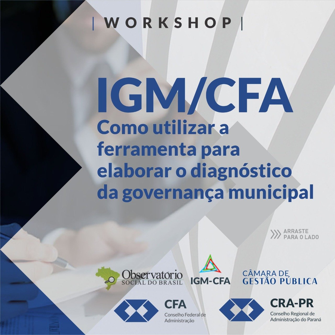 Estão abertas as inscrições gratuitas para o workshopÍndice de Governança Municipal (IGM), indicador do Conselho Federal de Administração (CFA) que contribui para boas práticas e melhoria da gestão pública. A...