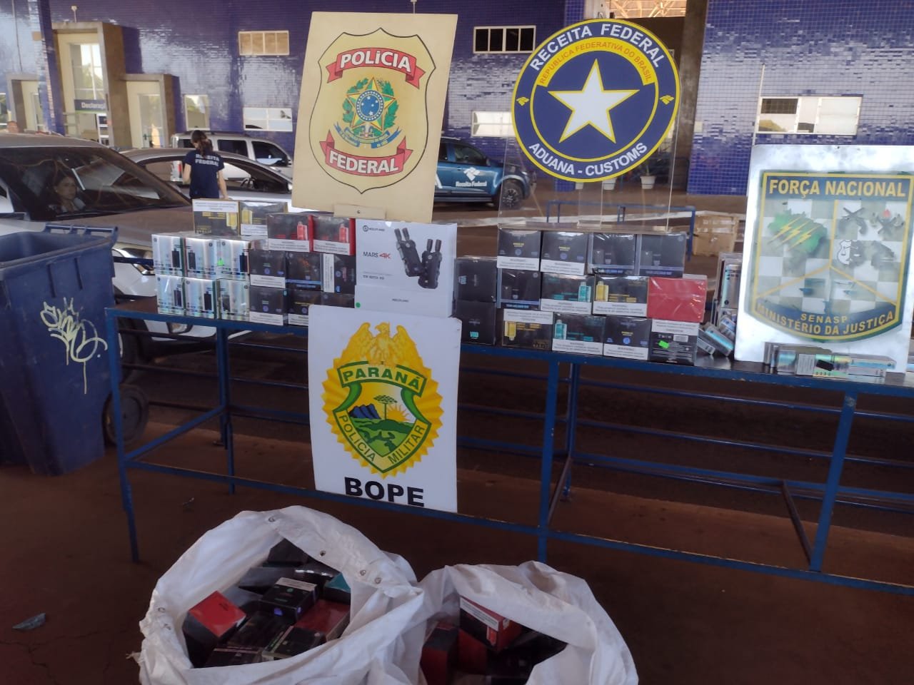 No primeiro dia, durante abordagens no posto da Polícia Rodoviária Federal, foram registrados dois casos de destaque. Um veículo com ocupantes brasileiros e destino a Medianeira/PR foi flagrado transportando celulares...