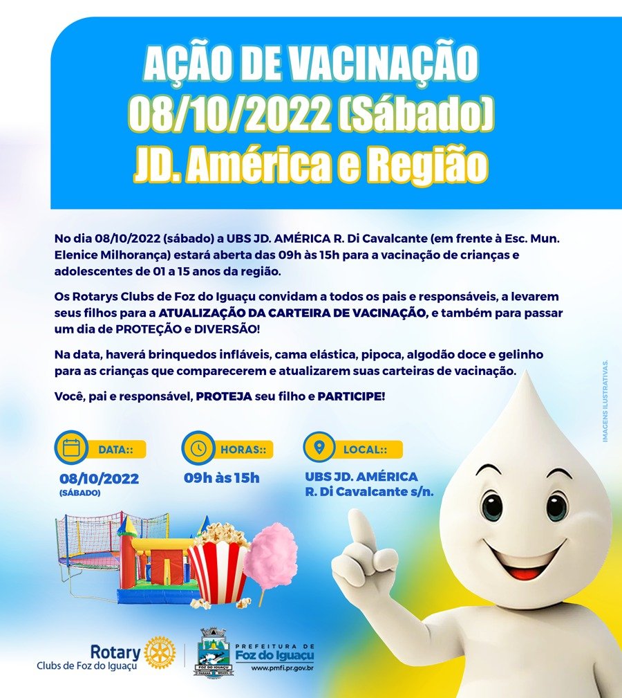 No próximo sábado, dia 8 de outubro, a Secretaria Municipal de Saúde e os Rotarys Club de Foz do Iguaçu promovem mais uma ação de vacinação, com foco especialmente na...