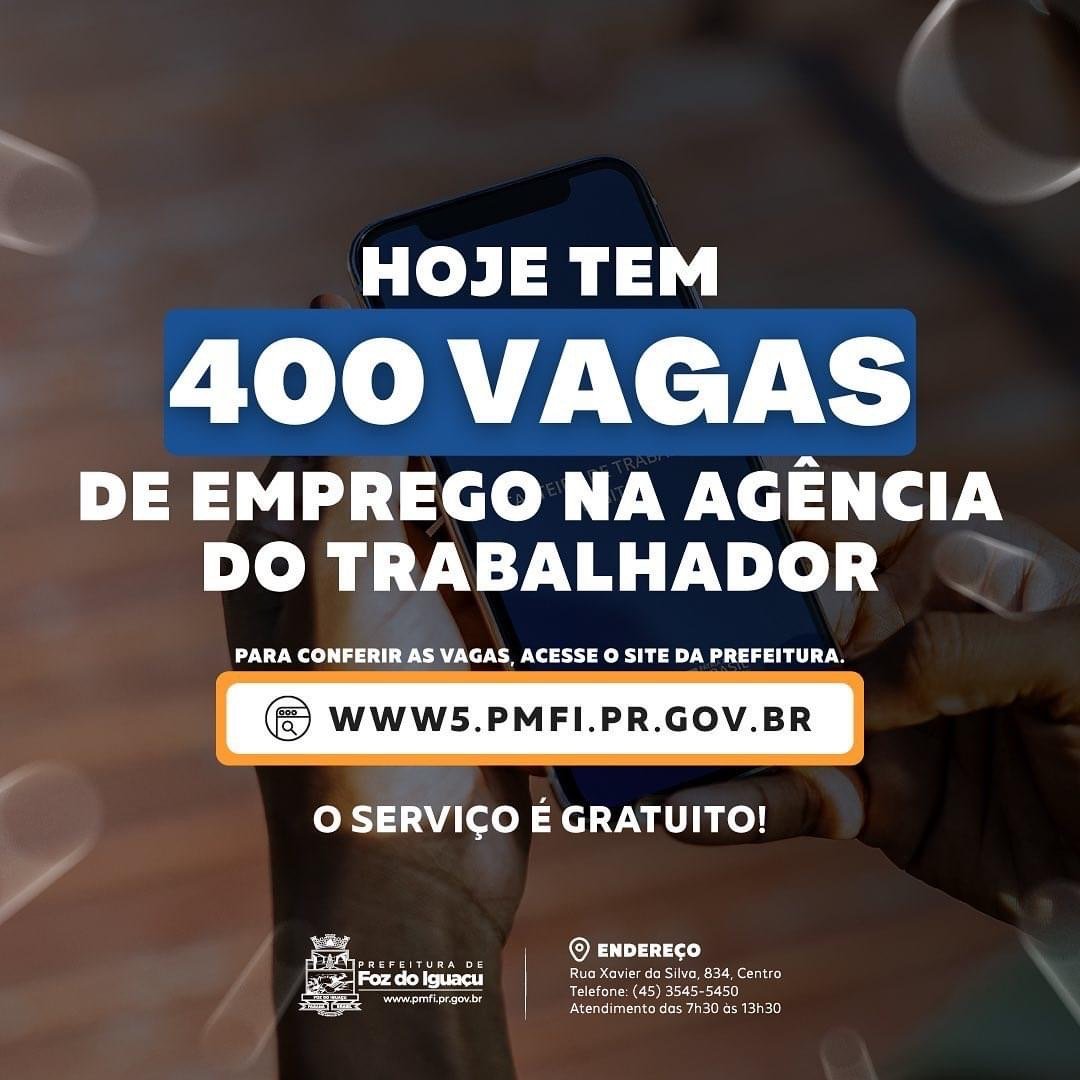 As vagas sofrem alterações constantemente. Antes de se dirigir até a agência, ligue verificando se a vaga está disponível pelo telefone: (45) 3545-5450; Atendimento gratuito de segunda a sexta 07h30...