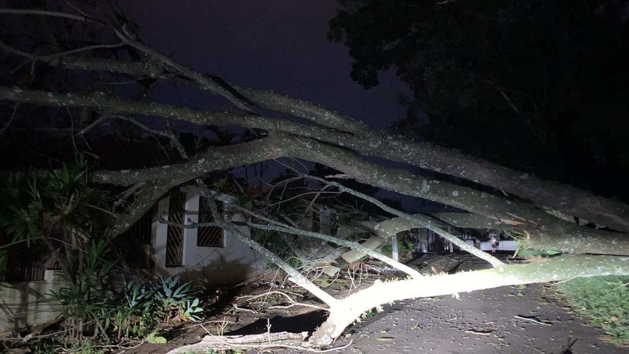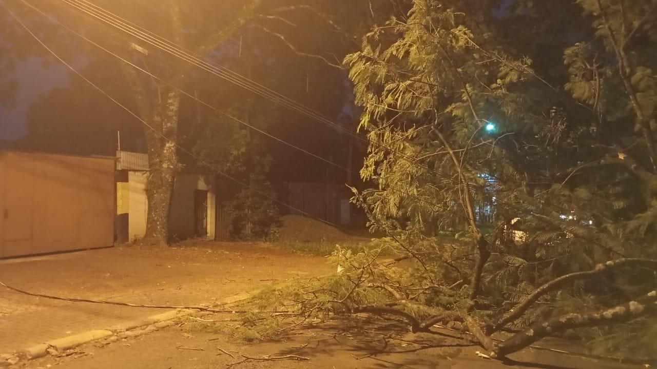 Na noite de hoje, uma tempestade acompanhada de fortes rajadas de vento atingiu a área urbana, resultando na queda de galhos e árvores em diversos pontos da cidade. Apesar da ausência de precipitação, os ventos provocaram danos significativos.